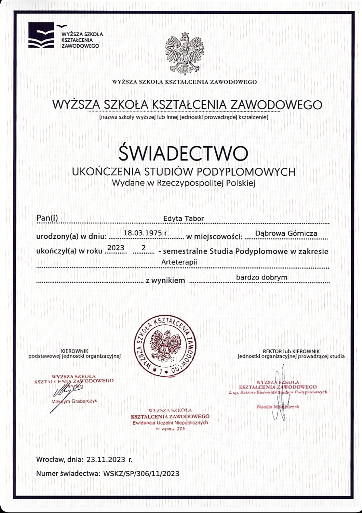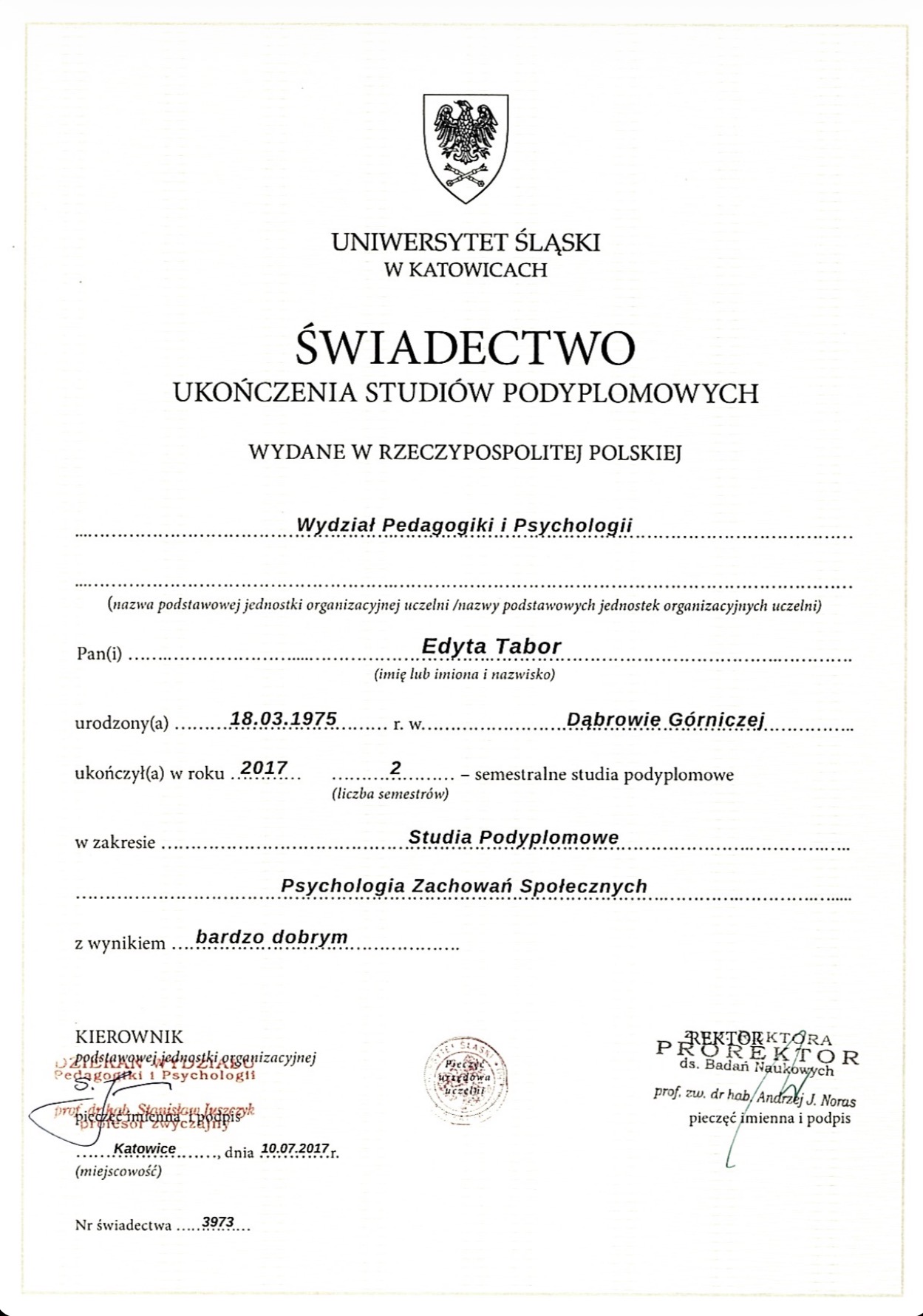 Obecnie pracuję w Centrum Diagnozy i Rozwoju Personalnego PSYCHE w Katowicach. Prowadzę również prywatny gabinet i sesje, korzystając z przestrzeni w Dąbrowie Górniczej.