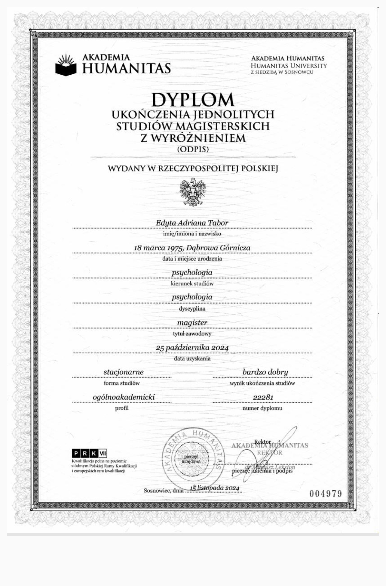 Jako Psycholog, Terapeuta i Psychoterapeuta CBT (wts.), oferuję specjalistyczne wsparcie skoncentrowane na efektywnym rozwiązywaniu wyzwań i poprawie jakości życia.