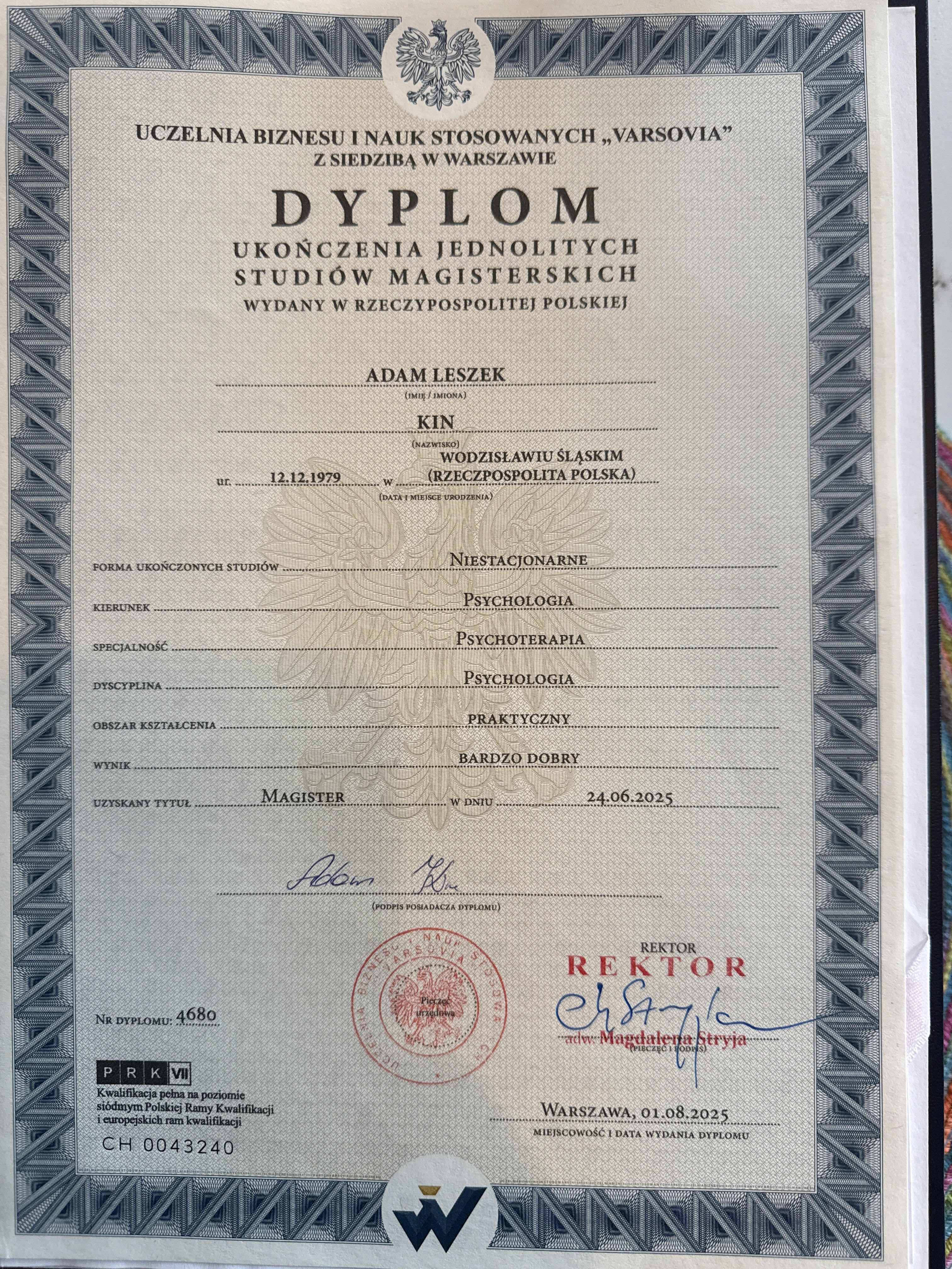 Specjalizacja: Zarządzanie Stresem, regulacja emocji, budowanie relacji, wspierający dialog wewnętrzny i pozytywne myślenie, rozwiązywanie konfliktów, odporność psychiczna, pomoc w kryzysie tzw. zakręt życiowy (rozwody, rozstania, kryzysy osobiste)
