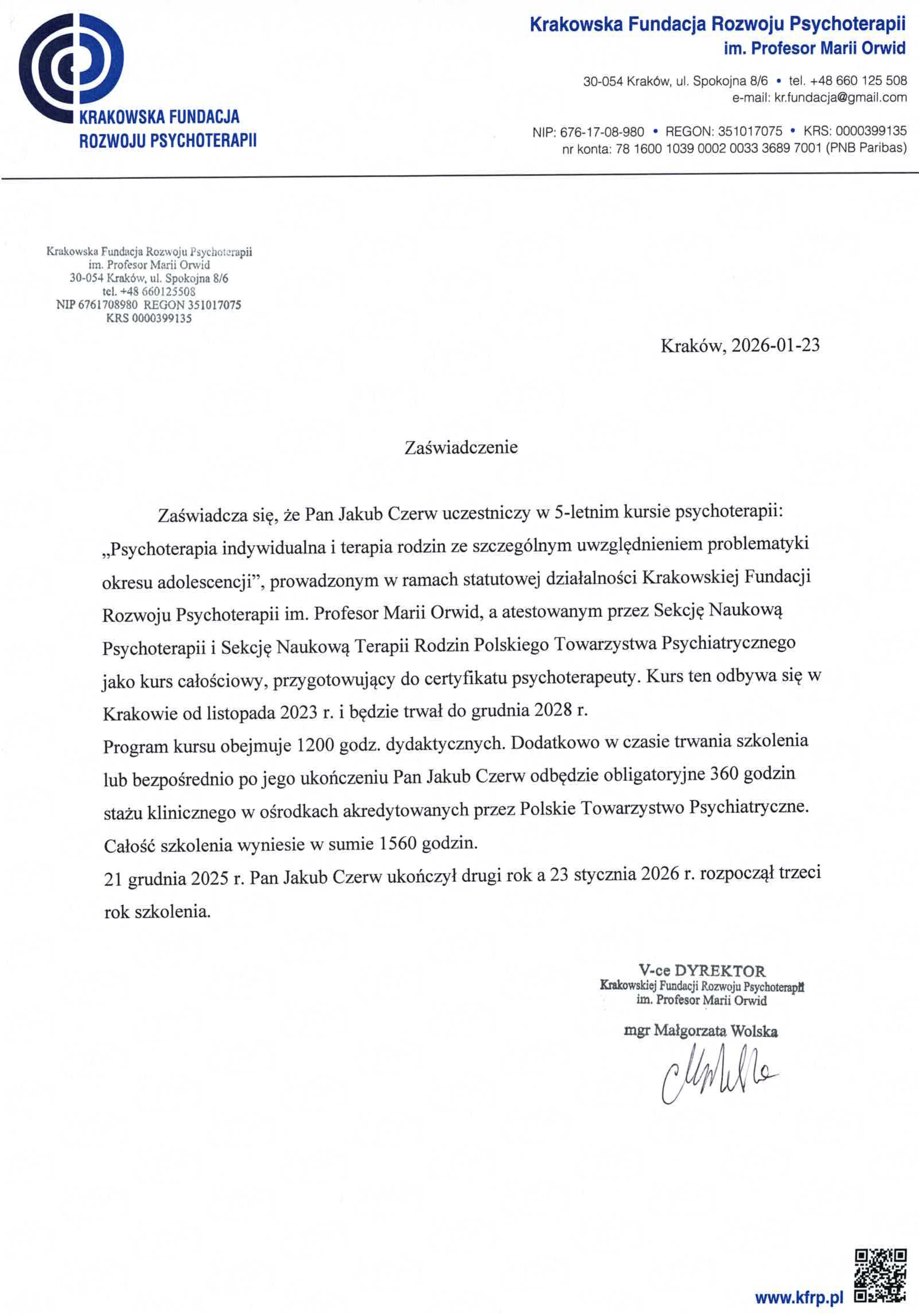 Psychoterapeuta w trakcie szkolenia Jakub Czerw