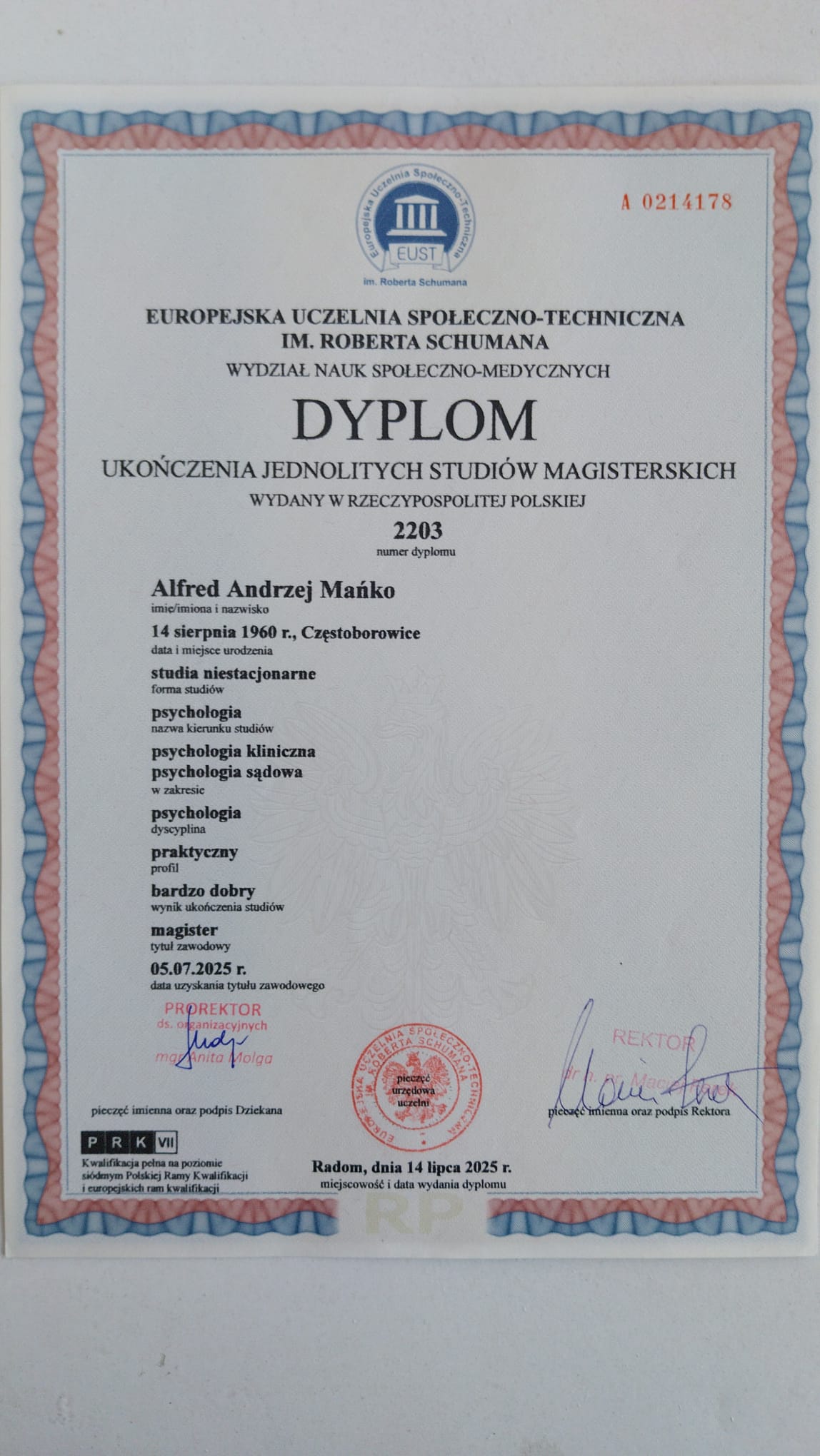 Brałem udział i prowadzę sam warsztaty NVC, od wielu lat opiekuję się osobami z niepełnosprawnościami, mam doświadczenie z osobami z traumą, zajmuję się traumą złożoną i emocjonalną, pracą z ciałem, rozumiem i wdrażam integrację psyche-soma, szczególnie przez świadomość emocji i ich wpływu na ciało, prowadzę rozmowy o potrzebach, emocjach i traumach, mam wiedzę o wpływie przemocy z dzieciństwa i z kolejnych etapów życia na funkcjonowanie somatyczne.