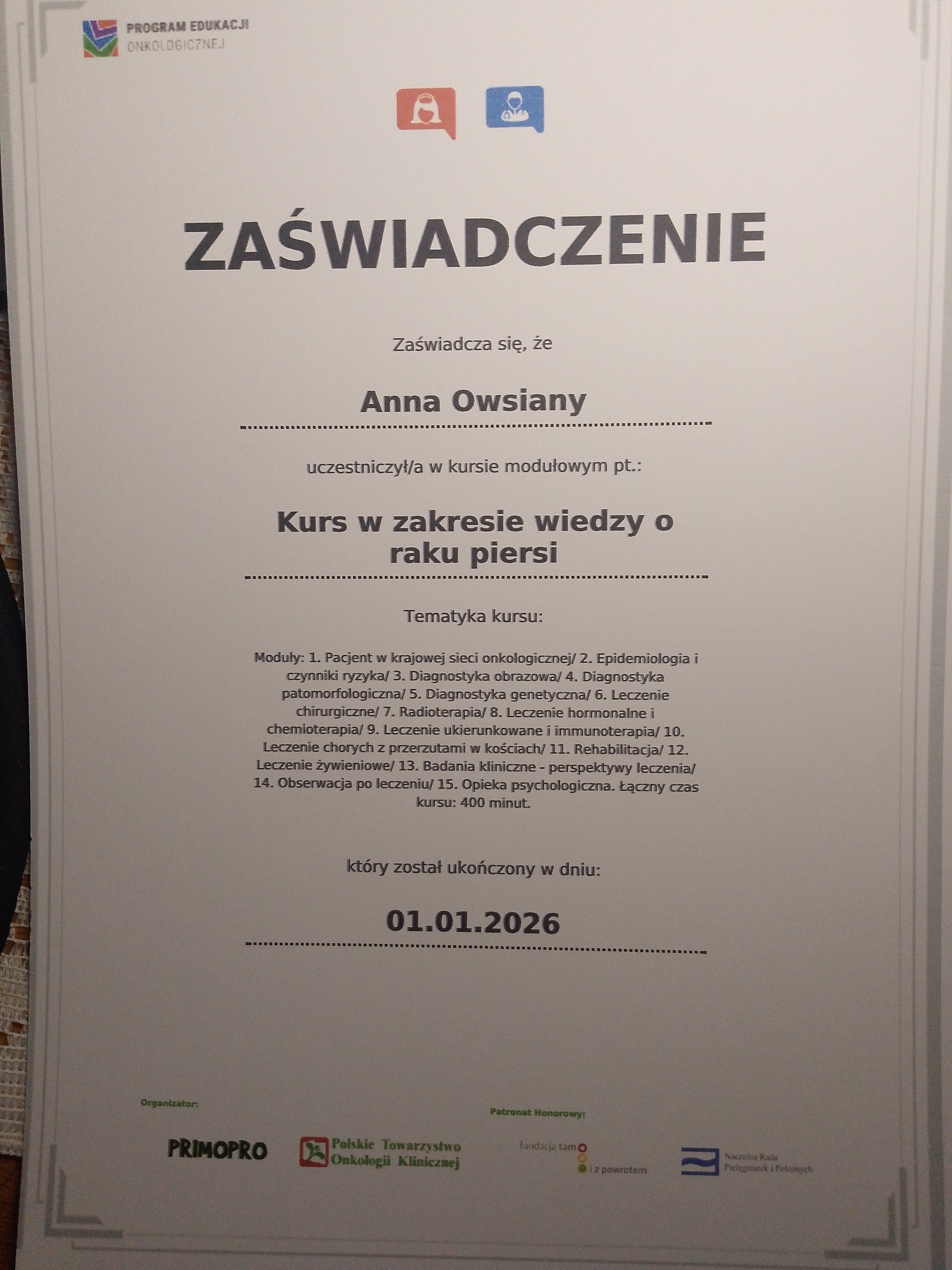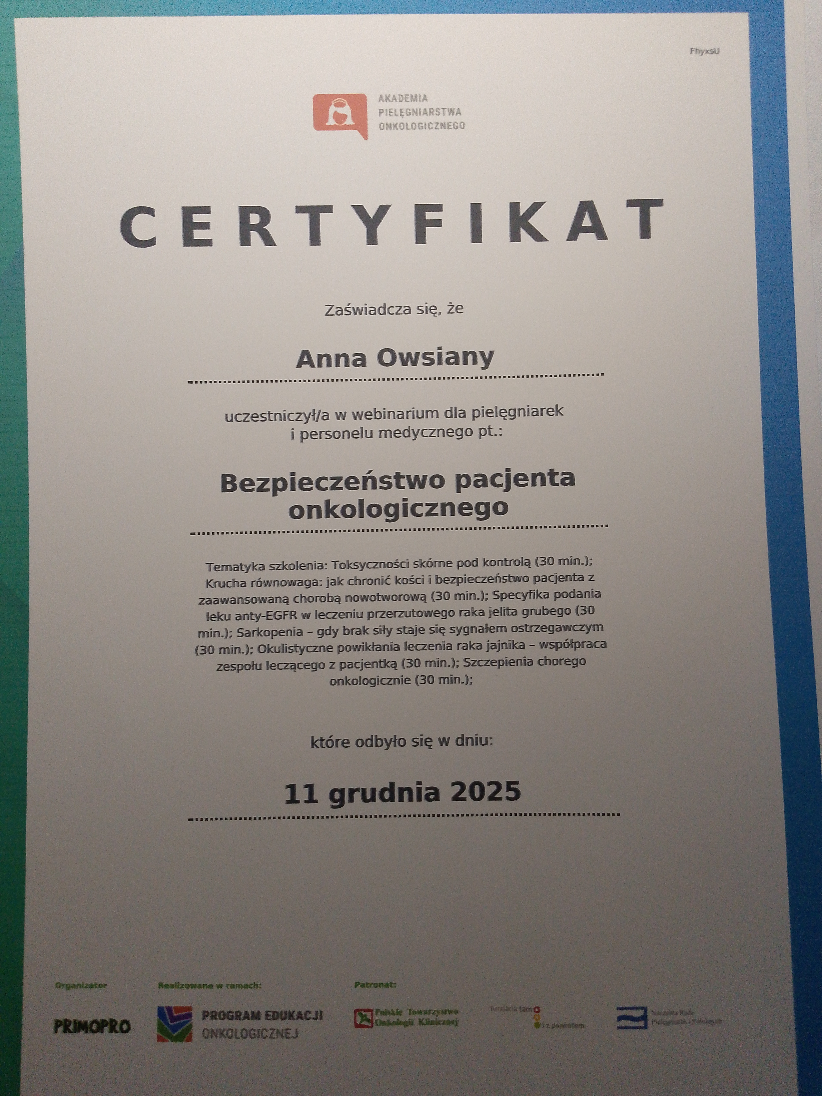 Certyfikaty:
