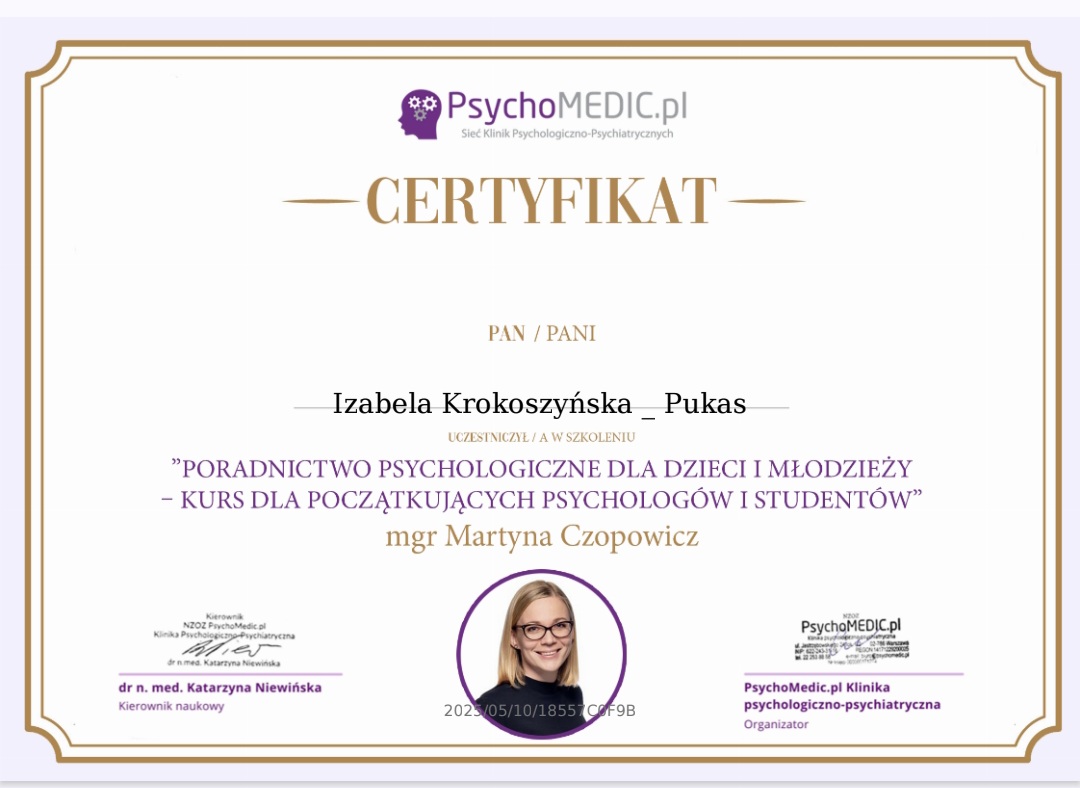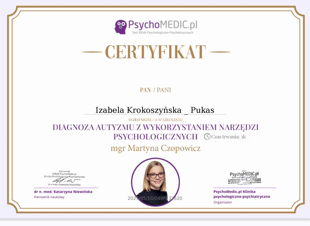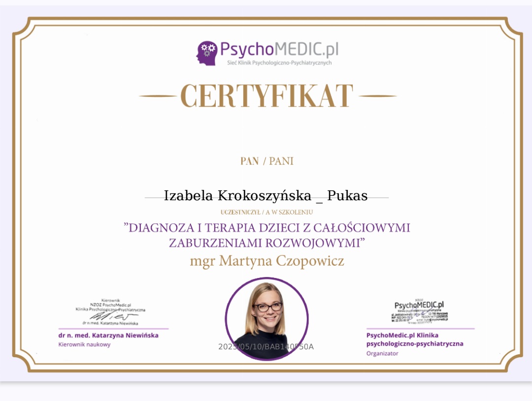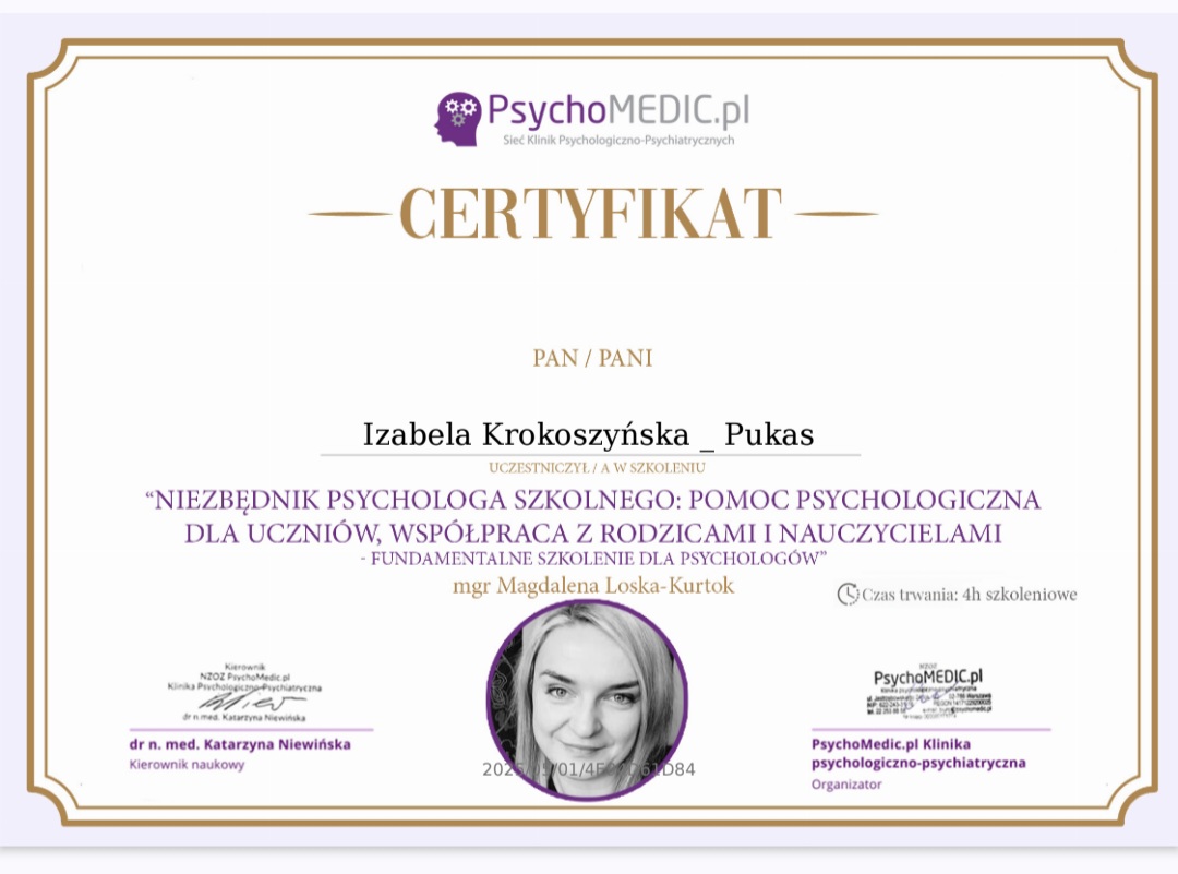 mgr Izabela Krokoszyńska-Pukas - Psycholog, Pedagog Specjalny.