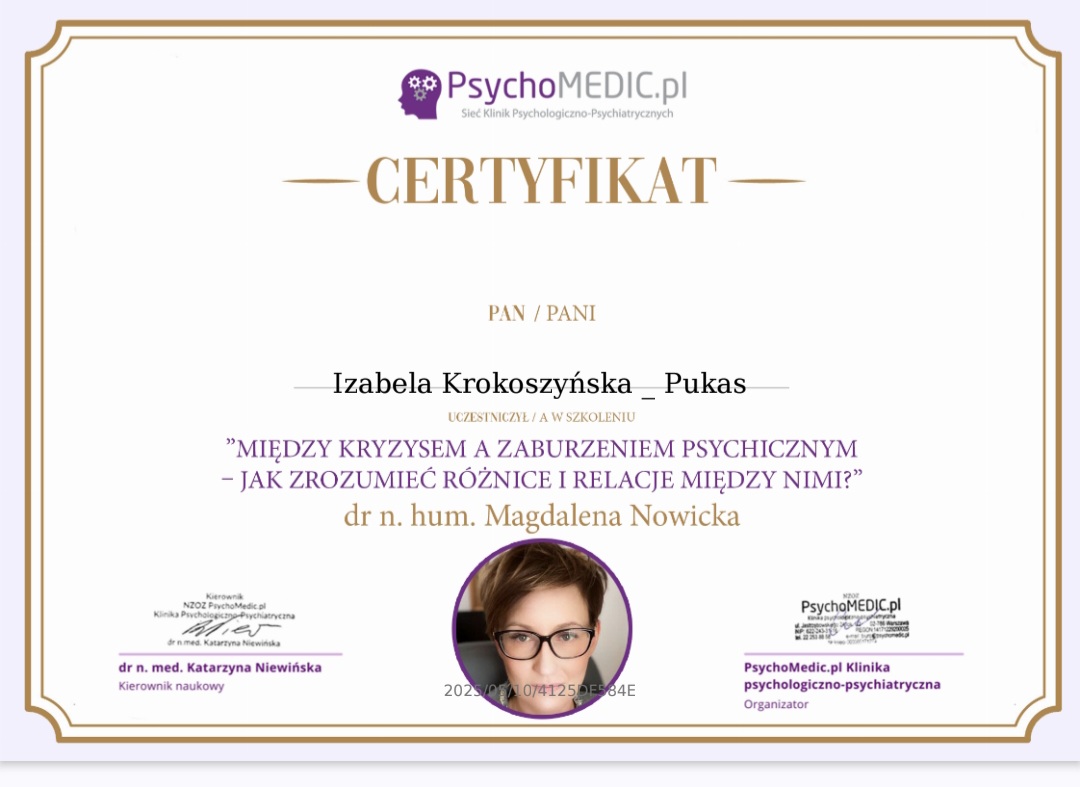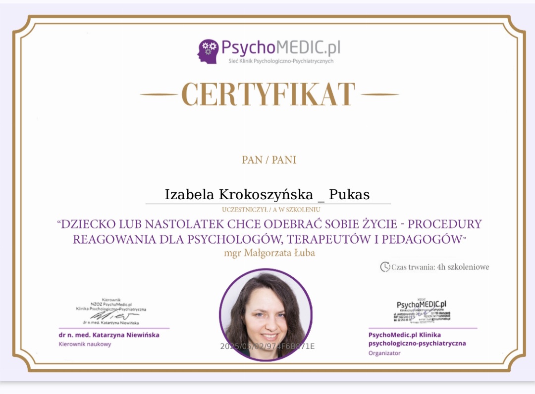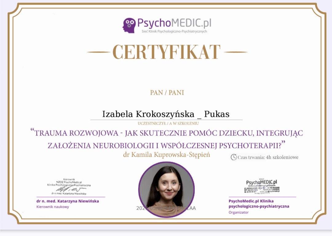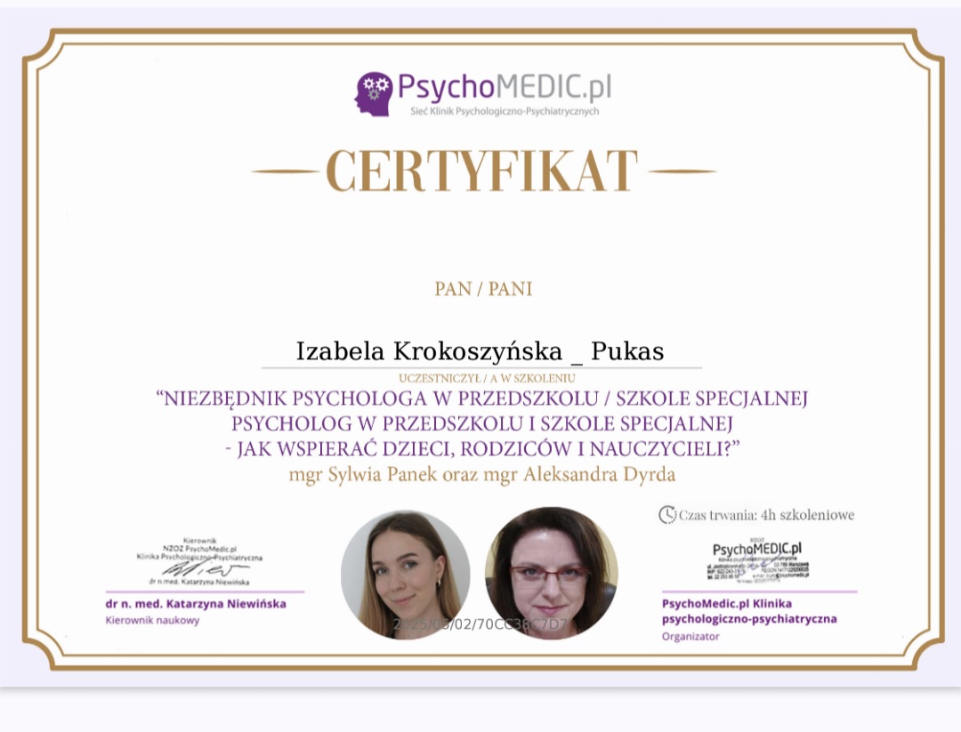 mgr Izabela Krokoszyńska-Pukas - Psycholog, Pedagog Specjalny.