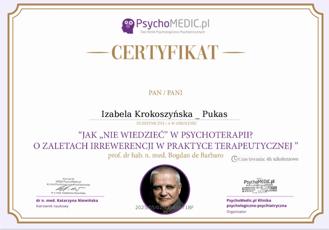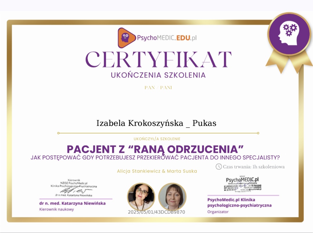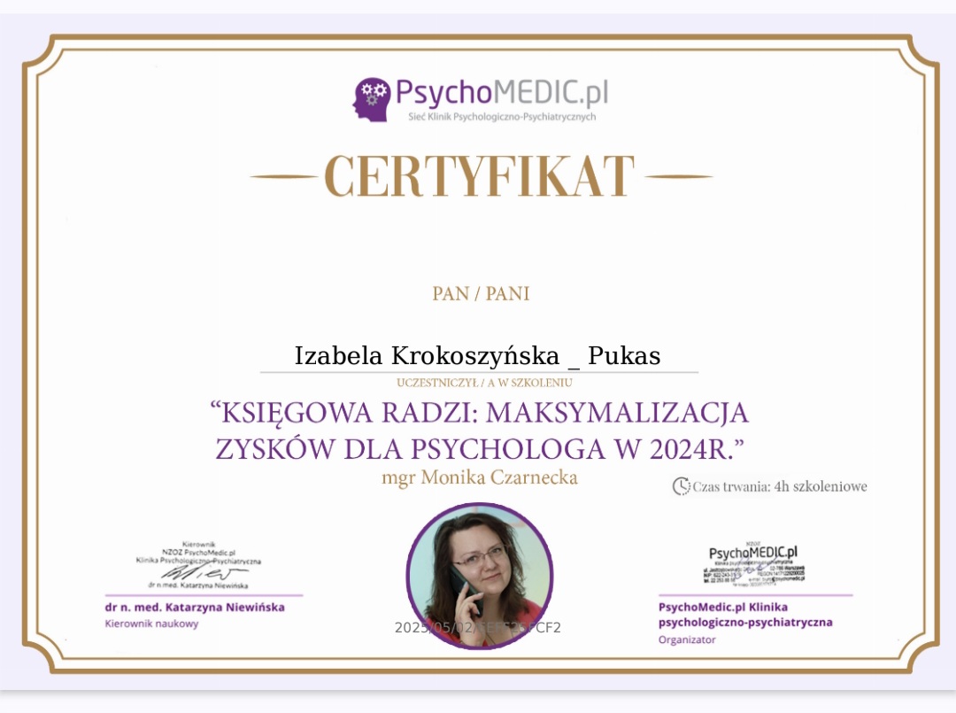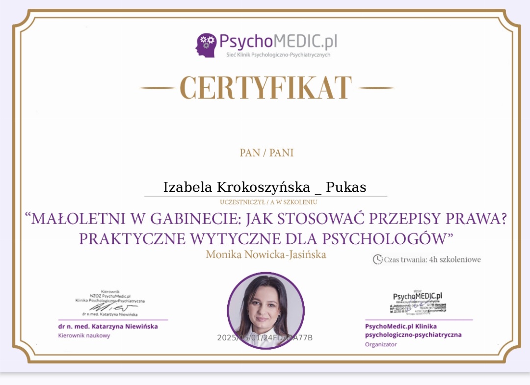 Profesjonalne porady psychologiczne! Masz problem - napisz do mnie: izabela.k.p@op.pl lub zadzwoń tel. 513735968 \ 512229896.